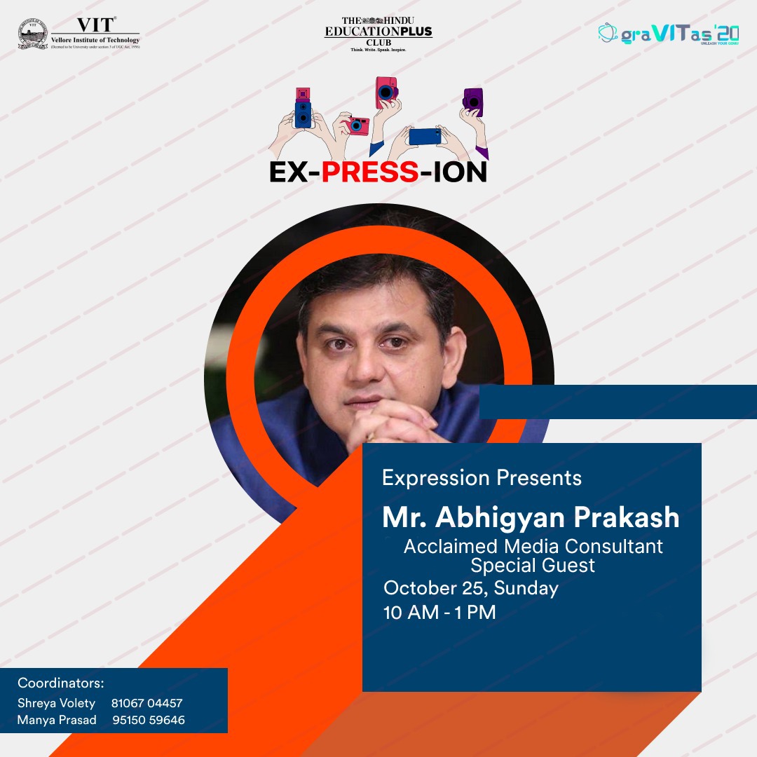Understand journalism by learning skills of research and presentation in drafting news reports from one of the biggest names in media, Mr. Abhigyan Prakash, Senior Executive Editor at ABP News. Let your debating, writing, speaking and understanding skills shine through Ex-Press-Ion.